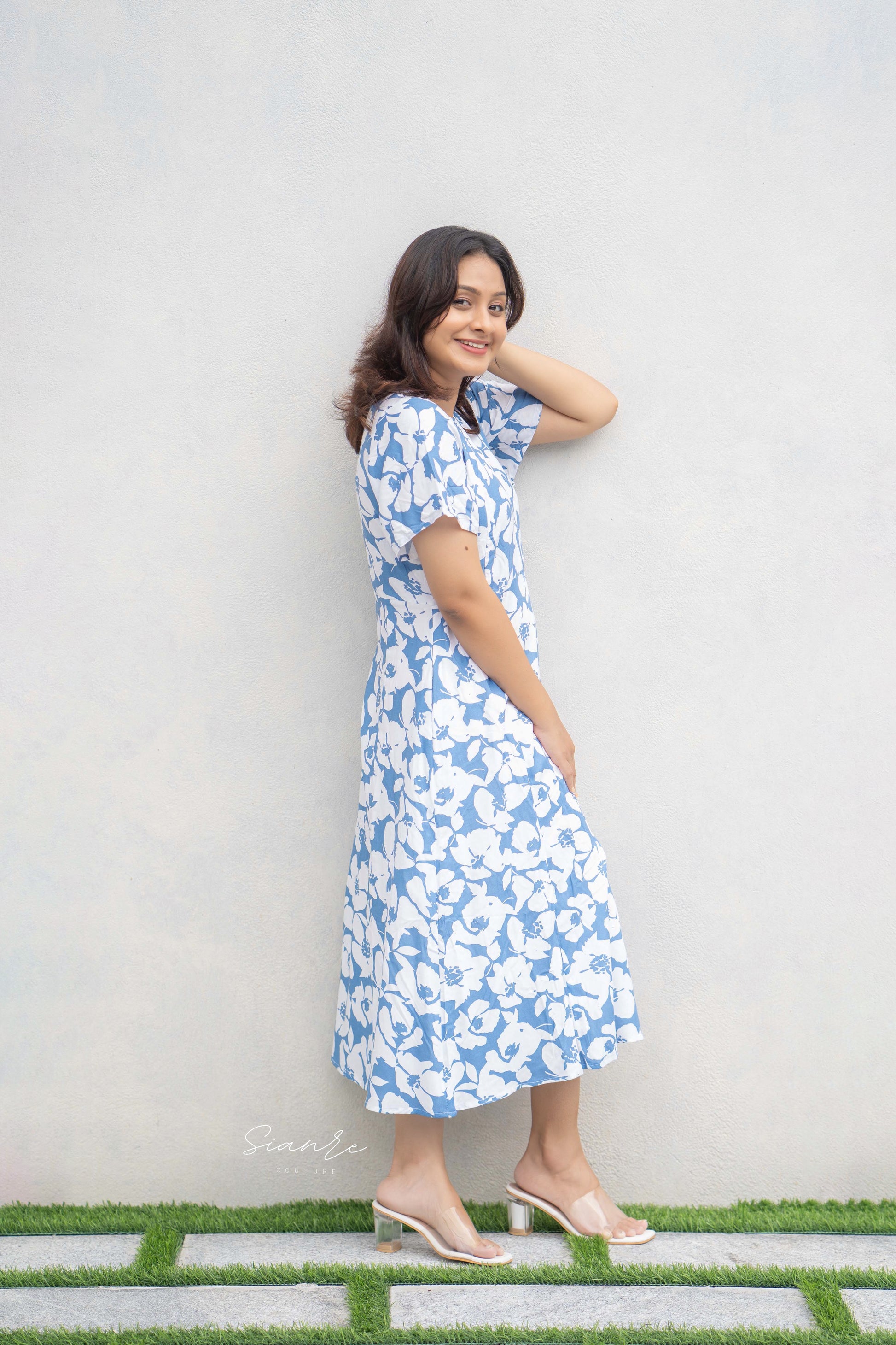 Blue Blossom Breeze Midi Dress